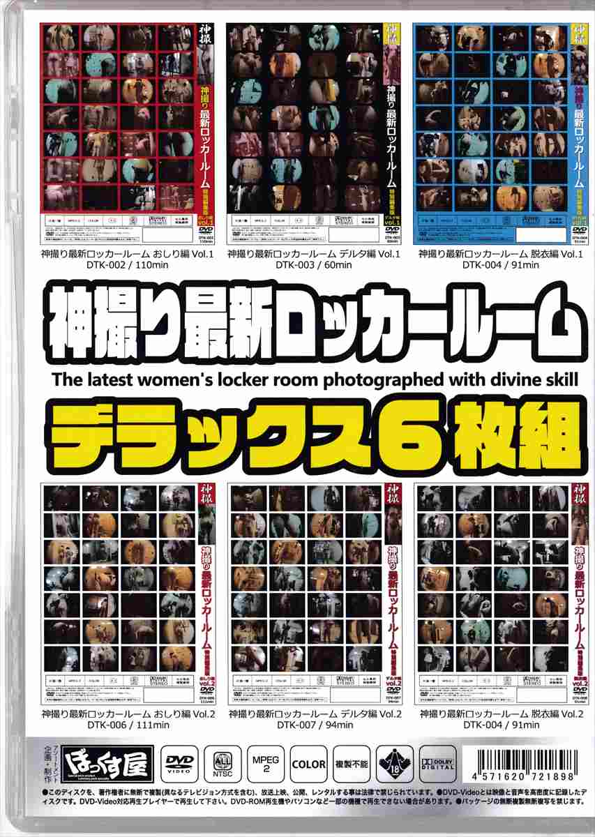 脱衣天国シリーズの「スーパー脱衣天国」&「脱衣天国NEO」に加え、最新シリーズの「レディースサウナ最新ロッカールーム生着替え」の合計3シリーズをおしり・股間・脱衣所を中心に贅沢編集を施した特別版の豪華6枚組ボックス。