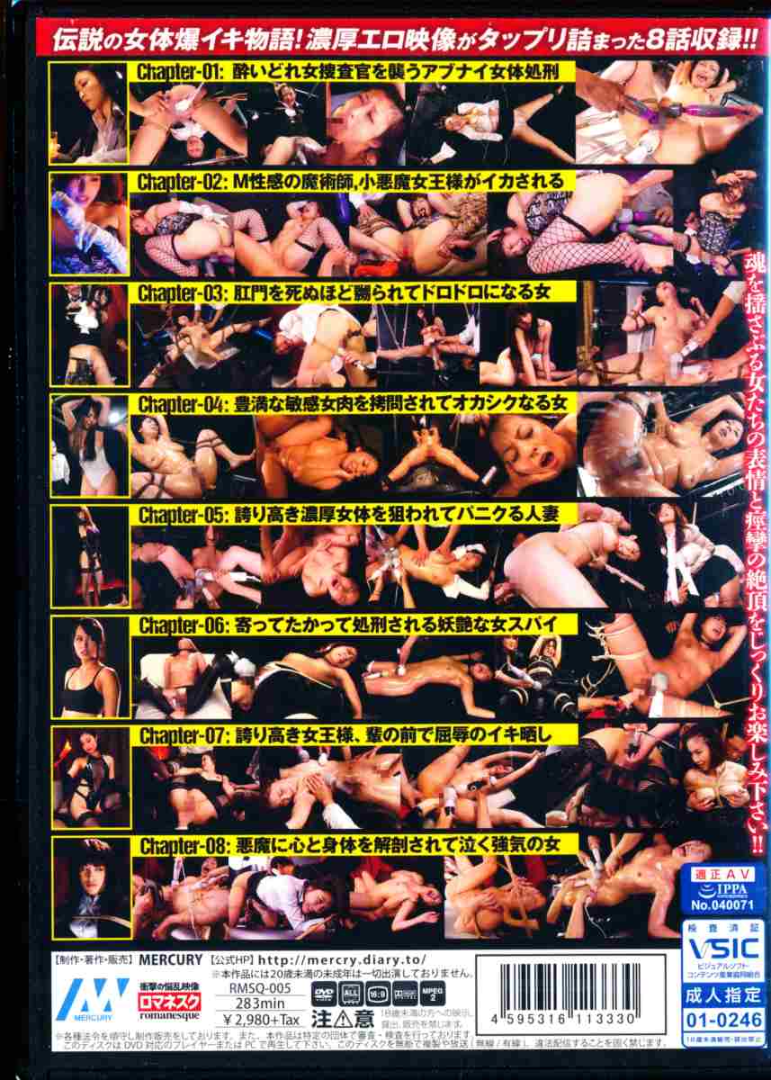 最高級の女神たちがドロドロに堕ちて本気で狂い泣く超ド級のファイナルカット8名収録!ハッキリ言ってマジで完全保存版の絶頂図鑑です。女捜査官や女スパイ、女王様たちが獣どもに捕えられてから徐々に追い詰められて何度もイカされまくり、挙句は自ら肉棒を求めるM奴●に成り下がるまでの一部始終をじっくりご覧下さい!