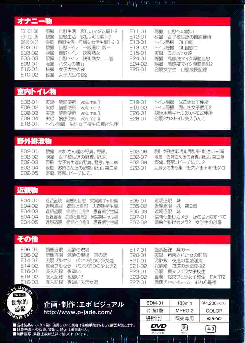 2005年3月から2007年1月に発売されたエボDVD作品総合カタログ。お買い得のDVD2枚組み+未収録映像60分+作品ジャケットDATA 63タイトル完全網羅