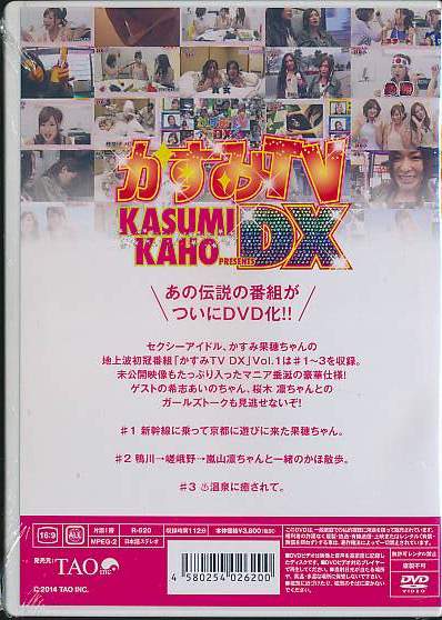 セクシーアイドル・かすみ果穂ちゃんの地上波初冠番組『かすみTVDX』の第1巻。ゲストに希志あいのちゃんと桜木凛ちゃんを迎え、3人がガールズトークを繰り広げる。第1回「新幹線に乗って京都に遊びに来た果穂ちゃん。」から第3回と未公開映像を収録。